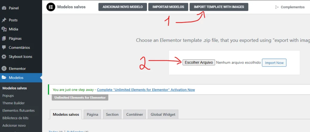 A importação desse template deve ser feita com o plugin Unlimited Elements For Elementor. Veja o tutorial em vídeo clicando aqui.