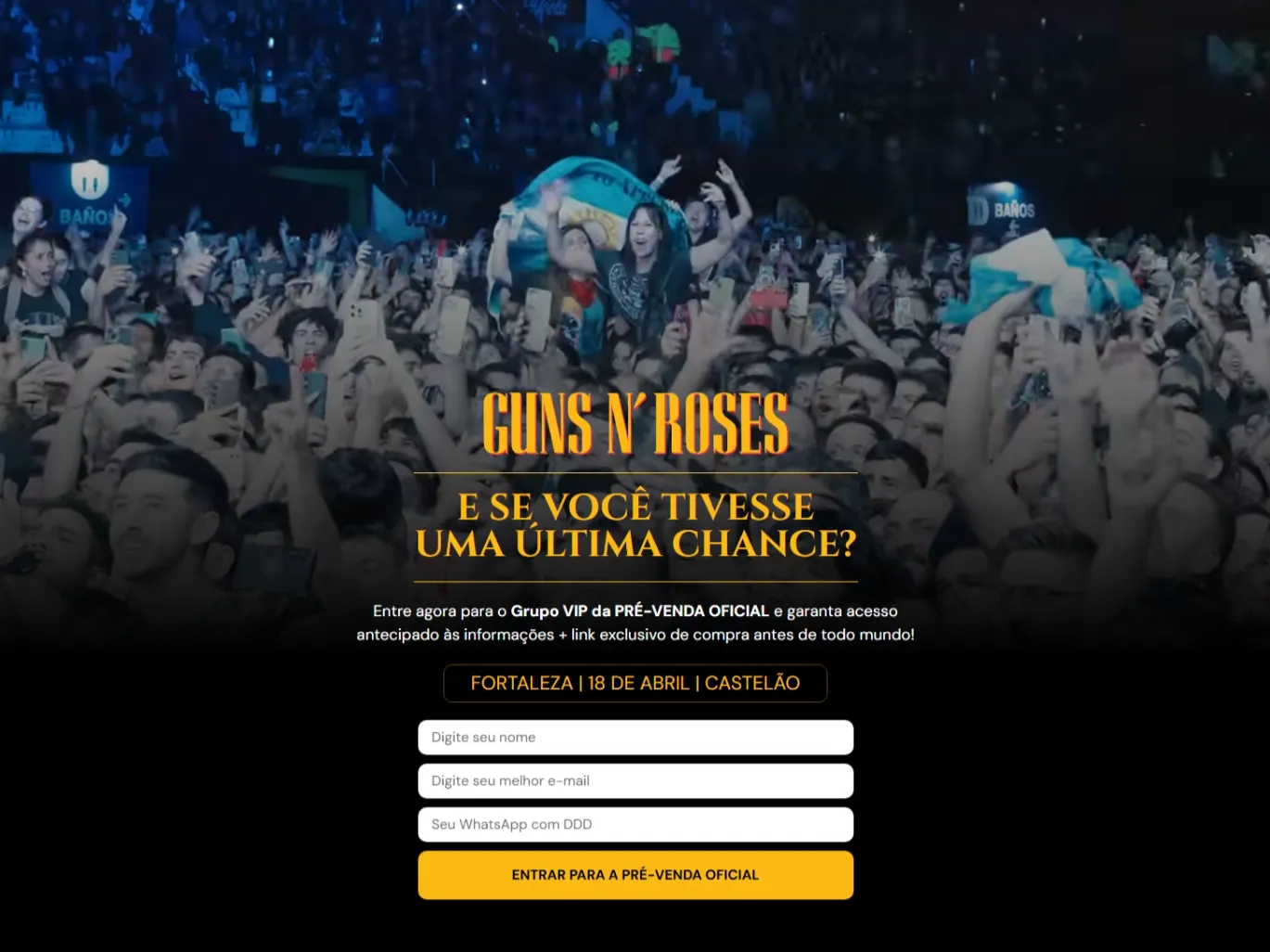 Este Template Landing Page para Shows e Eventos foi criado especialmente para pré-venda VIP, campanhas exclusivas e divulgação de concertos — tudo com alta conversão e design premium.
